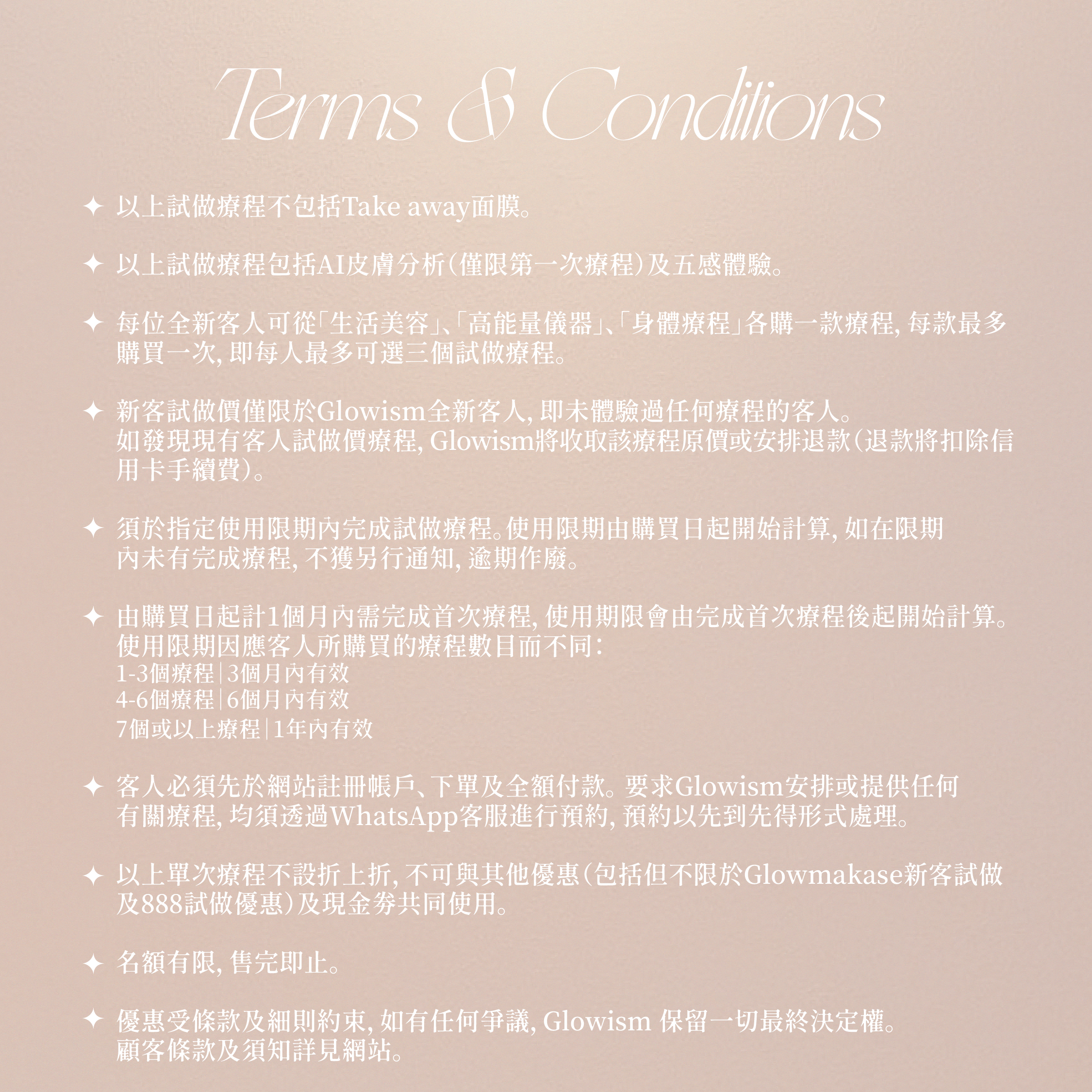 注意:高能量療程之間需要相隔3-4星期,如欲了解更多療程資訊或有任何疑問,歡迎在購買美容服務前聯絡客服查詢。